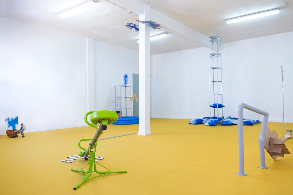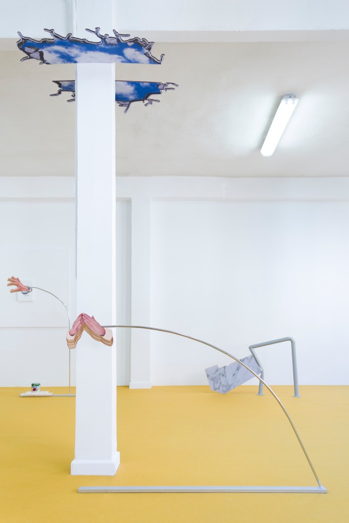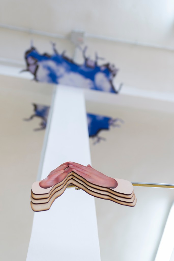 La exposición también dialoga con referencias literarias que han abordado el concepto del cielo y su contraparte: la imposibilidad de alcanzarlo. En «La biblioteca de Babel», Jorge Luis Borges propone la paradoja de un universo infinito contenido en un espacio reducido, cuestionando la idea de lo monumental como condición del infinito. Por su parte, Arthur Rimbaud, en «Una temporada en el infierno», asocia el infierno con la tristeza terrenal, mientras que Julio Cortázar, en «Instrucciones para llorar», normativiza el llanto como un acto medido y contenido.